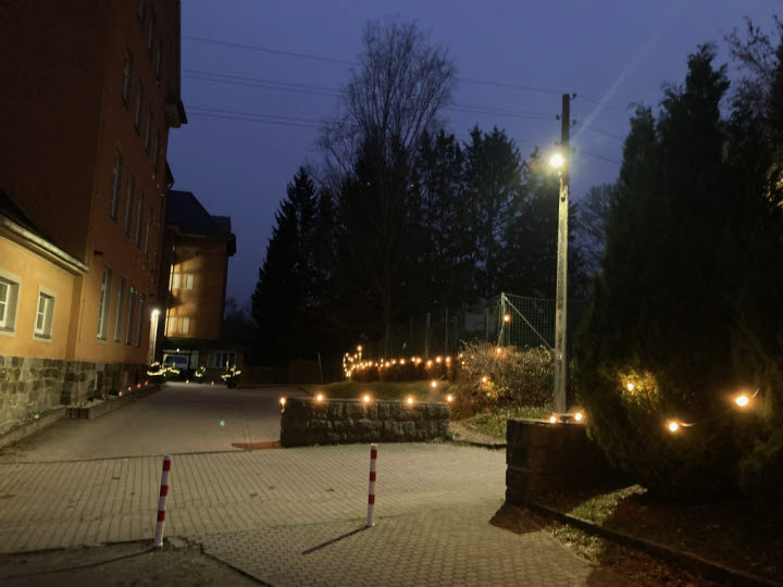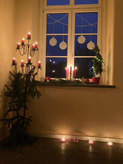 Klingeln. Warten. Große Augen. So viele fremde Gesichter vor der Tür. Frau Siller beruhigte die Bewohner, während die Schülerinnen und Schüler behutsam die Bäumchen aufstellten und die Lichter zum Strahlen brachten.